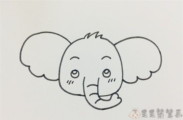 第四步:然后给大象画上眉毛、眼睛和腮红,这样的大象看起来更萌