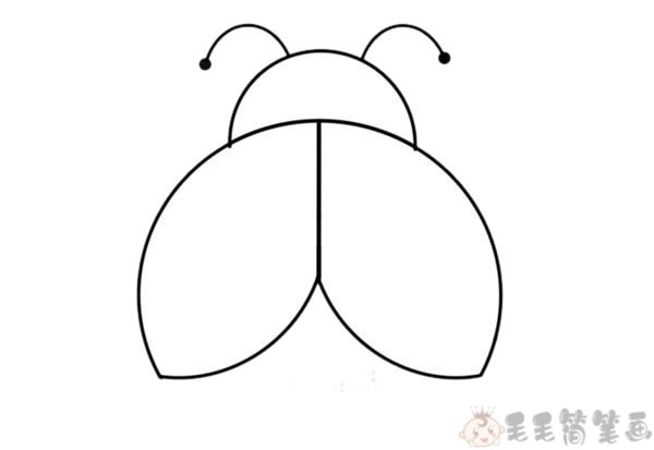 第二步:下面画一个大大的半圆,然后一分为二画出翅膀