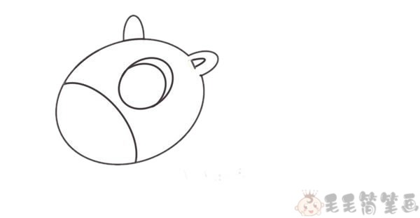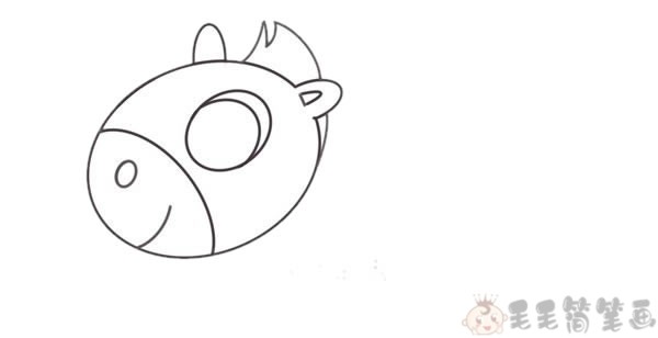 第二步:开始添加脸部的细节,左下方画一道弧线作为嘴巴的区域,中间靠上的位置我们画出马的眼睛