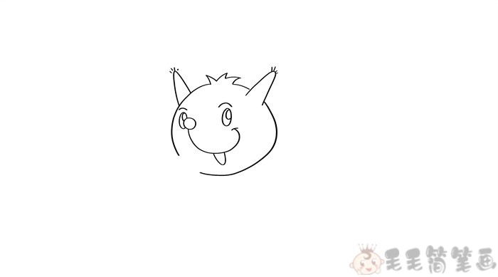 第一步:首先画出小松鼠的头部,头顶两侧画上尖尖的耳朵,并画上松鼠的五官,眼睛圆圆的,嘴巴画出尖尖的牙齿