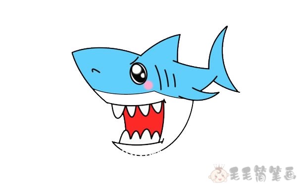 第六步:最后再涂上颜色,简单的鲨鱼就画好了