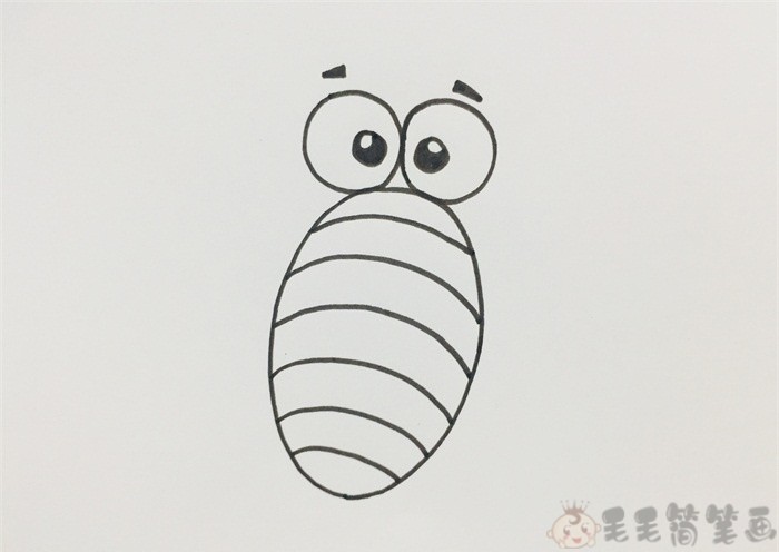 第一步:首先用平滑的线条将毛毛虫的椭圆形虫茧轮廓给画出来