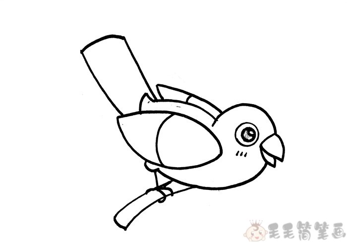 第五步:最后画上一根木棒,再给鸟画上细细的爪子,站在树枝上,这样,QQ红包鸟简笔画就完成了