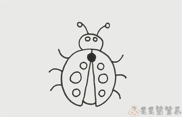 第四步:最后把头涂黑留出两只眼睛,把壳涂上红色,斑点涂上黑色。一只可爱的七星瓢虫就画出来了