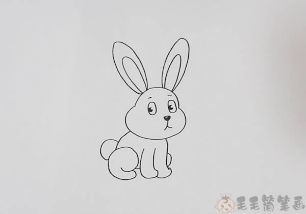第三步:接着画兔子的身体和四肢,短小的尾巴不要忘记画了