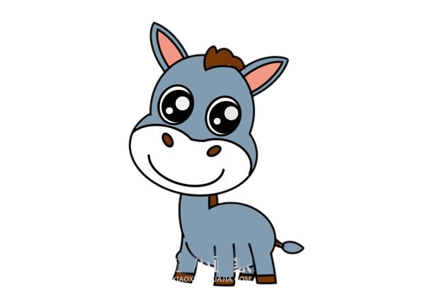 步骤六:最后涂颜色,这样卡通毛驴简笔画就完成了!