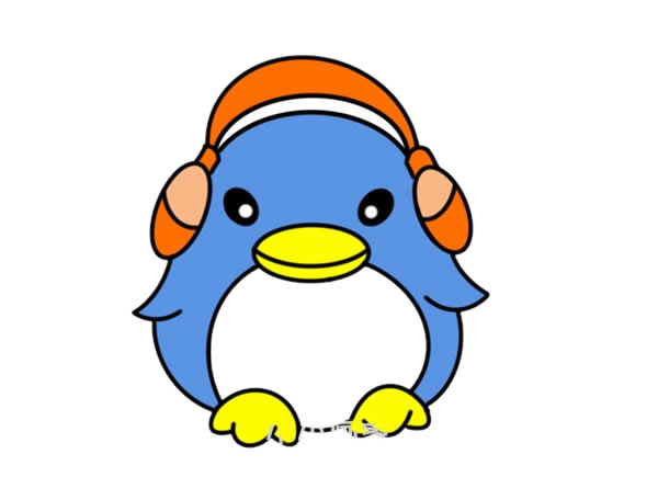 卡通企鹅简笔画的画法步骤:可爱的企鹅,戴着一个耳套,仿佛连它的耳朵也受不了南极的严寒啦!需要分别画出一个胖企鹅和一个橘色耳套,喜欢它的话拿起笔学起来吧!