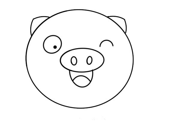 可爱小猪简笔画的画法步骤:胖乎乎的小猪,只能看到它的正面,就像是一个可爱的卡通动物头像。先画出头,再补充耳朵和两条腿即可,喜欢它就学起来吧!