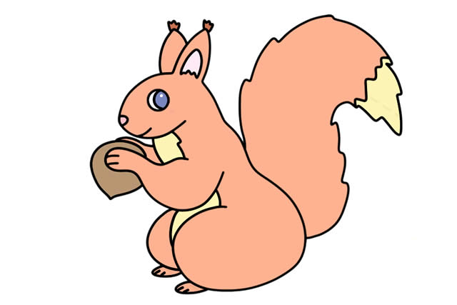 第五步:涂色,可爱的松鼠简笔画就完成了。