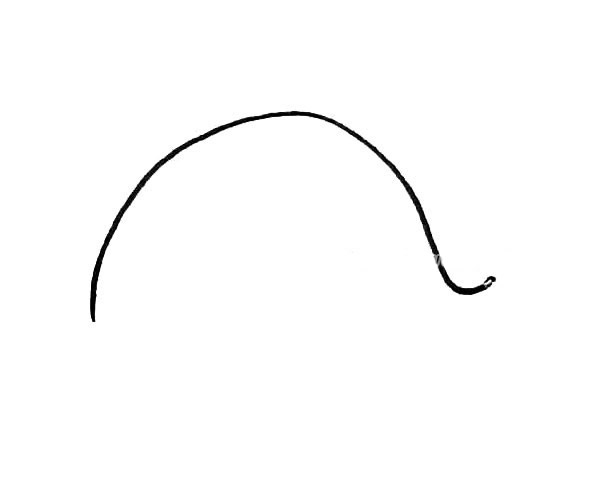 第一步:先画上半个椭圆形,有点小弯上去。