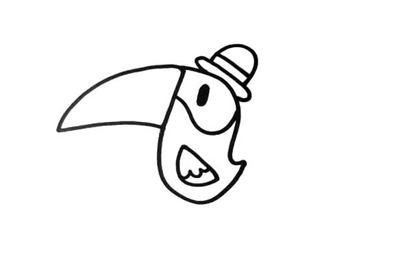 步骤二:接着画出大嘴鸟的身体并给他画一顶小礼帽