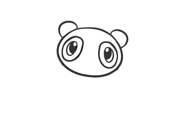 熊猫简笔画画法步骤二:接着画它黑黑的大眼睛和两只小耳朵。