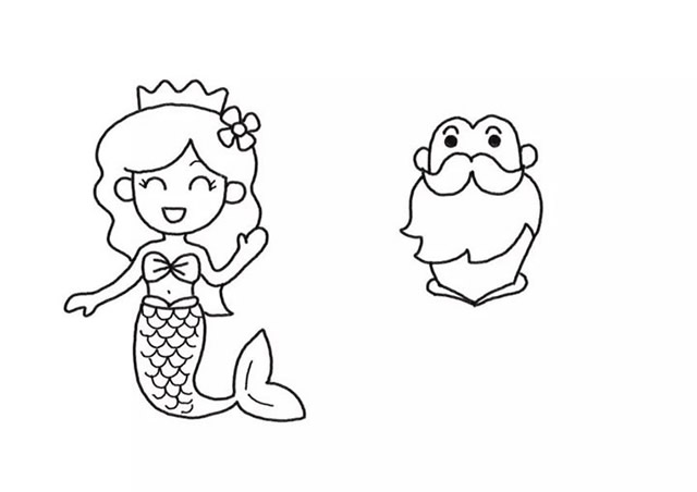 美人鱼公主和人鱼国王儿童简笔画画法步骤图教程:今天我们来学画的是美人鱼公主和人鱼国王儿童简笔画画法步骤图教程,喜欢的同学,就跟下面的绘画教程一起来看看是怎么画的吧!
