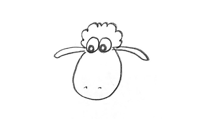 小羊肖恩简笔画画法步骤一:先画出小羊的头部轮廓和眼睛。