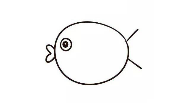 小胖鱼简笔画画法步骤二:左边画上嘟嘟的小嘴。