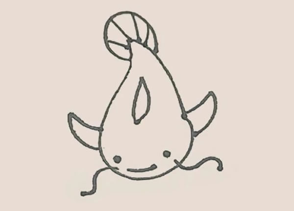 第四步:然后在左右两边画上三角形的鱼鳍,背上也要画上一个尖尖的椭圆形。