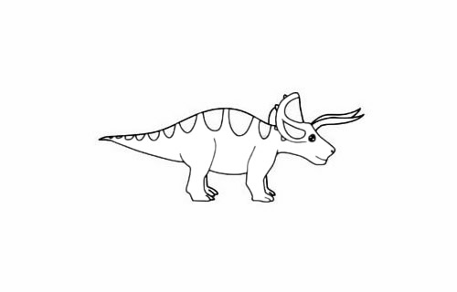 戟龙是草食性角龙下目恐龙的一属,生存于白垩纪坎潘阶,约七千六百五十万年前到七千五百万年前。它有短小的四肢、笨重的身体,以及相当短的尾巴。下面带大家来看看简笔画画法步骤戟龙的分步骤画法步骤。