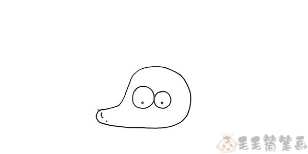 第三步:顺着它头部的后面画出第一节海螺壳,注意要比头部小一些
