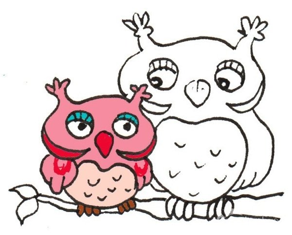 ⑥给小猫头鹰涂上粉色。