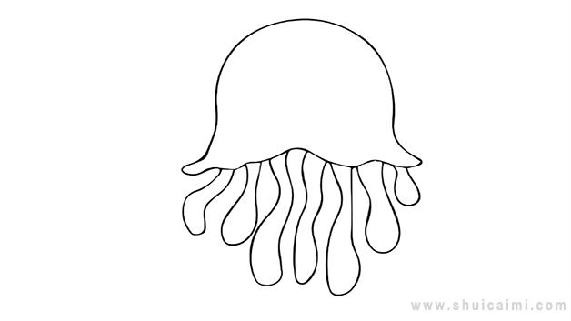 首先我们用线条勾勒出水母伞帽(头部)的外轮廓