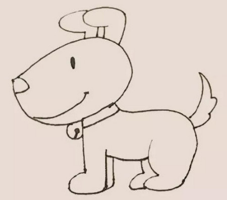 再给小狗补上眼睛和笑脸,脖子上可以再画上一根项圈铃铛。
