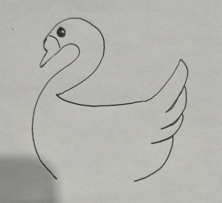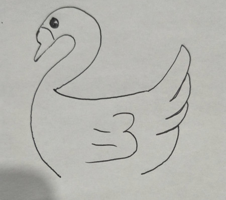 然后画大白鹅的翅膀,在它的身体里中间画一个像数字3一样的翅膀,里面画两条道道。