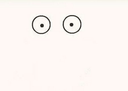 首先画上小青蛙的大眼睛。两只圆圆的眼睛注意之间的距离。在两个小圆圈的居中位置画上小黑点。