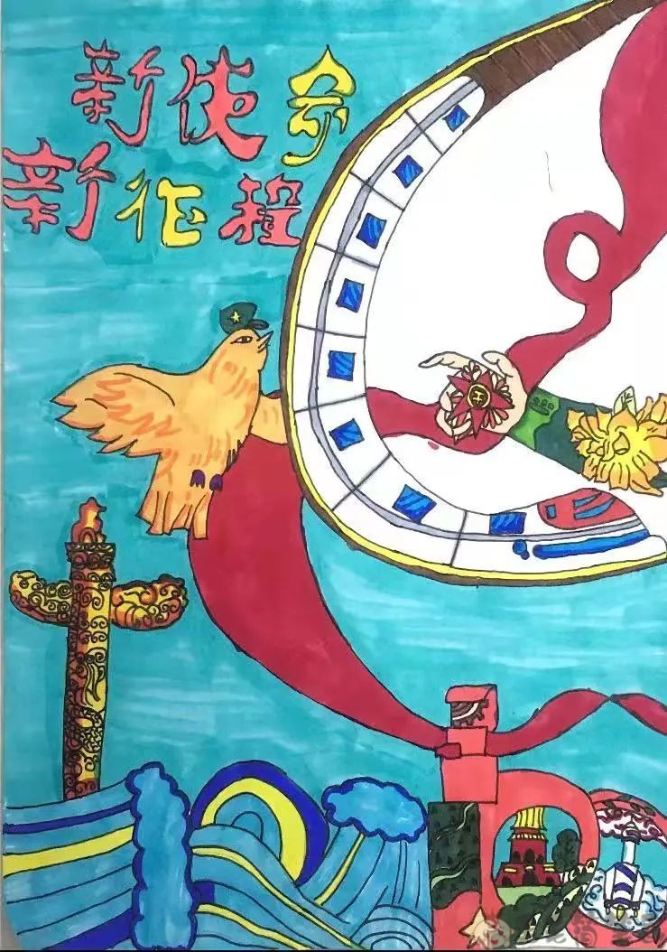 更多学党史儿童绘画作品,知党爱党灰胡子作品,可前往