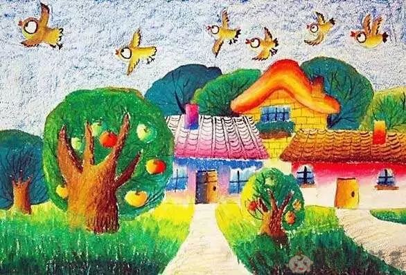 花园儿童美术画图片:花园的一角有一个小小的池塘,池塘里碧绿的荷叶上,星星点点的露珠在打着滚,荷花有的亭亭玉立,有的含苞待放,偶尔有小蜻蜓停在上面说着悄悄话呢。美好的花园景色存在于孩子的心中,拿起画笔画出来吧!