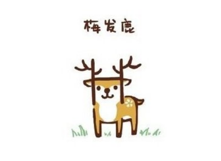 画出一个大写字母H,将H的头部画成梅花鹿的角。