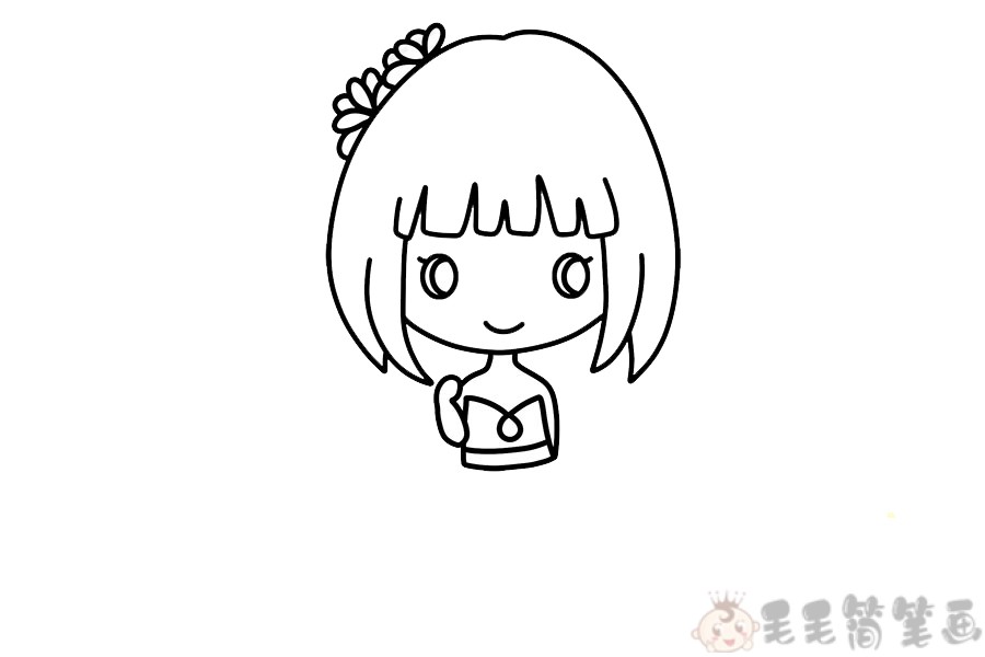 第二步:接着添加公主的表情后,继续向下画出公主的身体。因为是Q版画,所以身体比头部要小很多