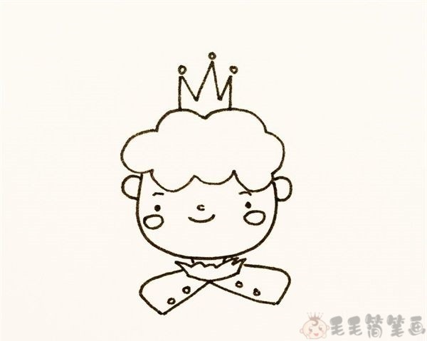 第二步:接着,我们再来画出王子的五官和头顶的皇冠