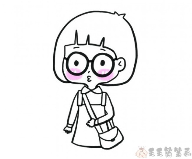 第八步:最后再图上颜色,Q版女孩子简笔画就画好了