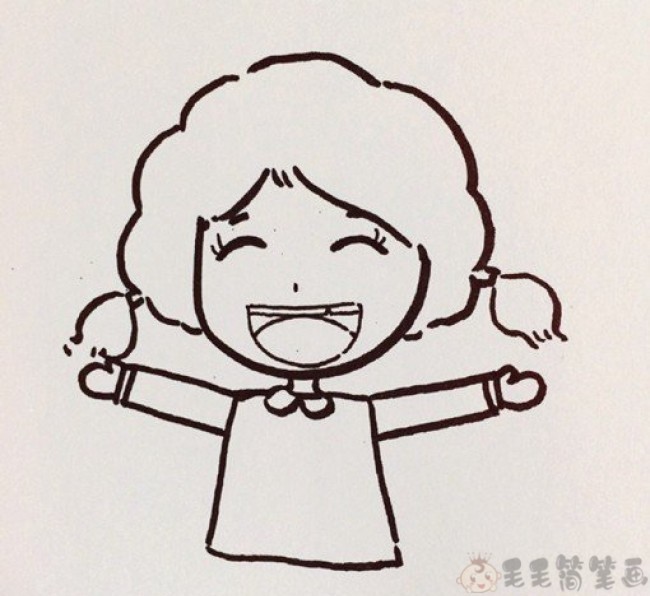 第三步:开始画小女孩的五官,脸部表情也是十分开心喜悦的。可以用开怀大笑来形容