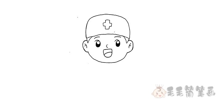 第一步:首先画出类似长方形的帽子,上下的边缘画成微微向下弯的弧度,正中间画一个红十字的标志