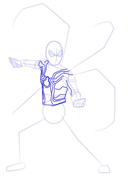 在漫威电影里,神奇的蜘蛛侠穿上了钢铁侠为他专门设计的战甲,看上去帅呆啦! 简笔画穿着新战甲的超帅蜘蛛侠的画法步骤,虽然很有难度,但真的值得我们努力画画看哟!