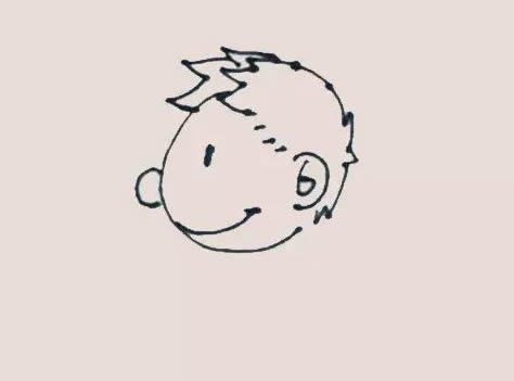 第二步:接着画上小学生的头发和耳朵,耳朵里面用一个6来表示结构。
