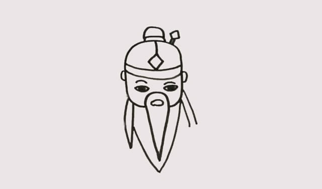 步骤一:首先画出关羽的帽子,画出帽子上面的菱形图案后,再将头顶上的帽顶给画出来。