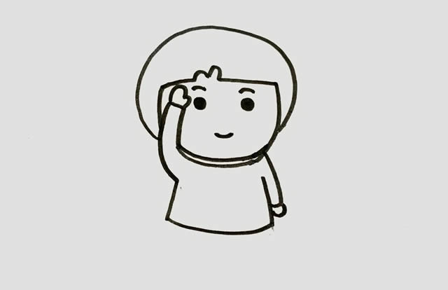 步骤一:在纸上画一个小学生的头部,画出头发、眉毛和微笑的嘴巴,画两个圆圆的黑点作为眼睛。