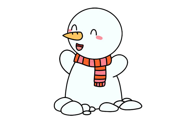 第五步:涂上漂亮的颜色,雪人就画好了!