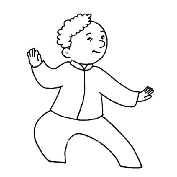 打太极的爷爷简笔画步骤图