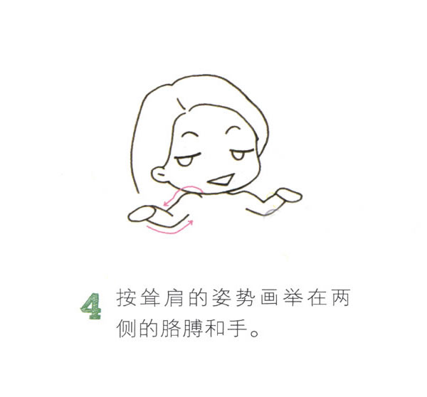 步骤四:按耸肩的姿势画举在两侧的胳膊和手。