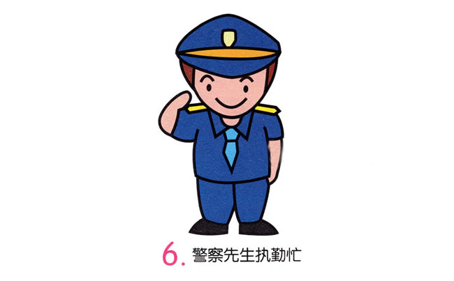 步骤六:涂上颜色,警察先生执勤忙,简笔画完成。