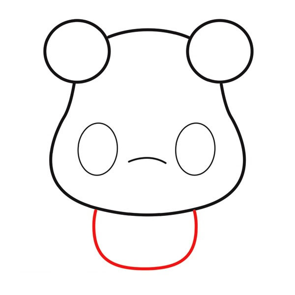 步骤八:画一个横向字母D形作为小熊的鼻子,画一个略弯曲的线作为分隔线。
