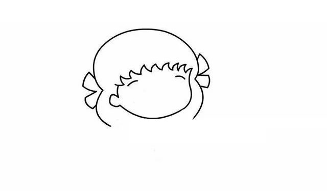 第三步 接着以发型为基础画出小女孩的脸型,同时画出耳朵部分,然后再画出眉毛。