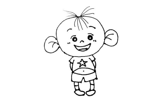 第八步:衣服上画上一颗星星,肚皮上加上一点做肚脐。