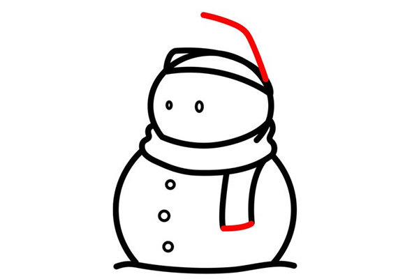 6.在底部用横线画出地面的延伸部分,头上用弧线画出帽子的延伸部分。