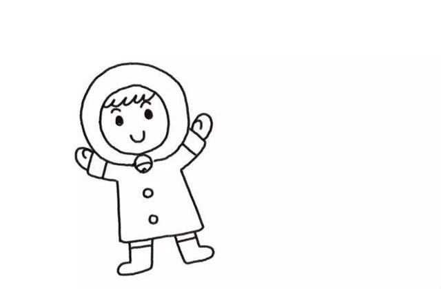 堆雪人的小女孩简笔画步骤三:画出小女孩的手和脚。