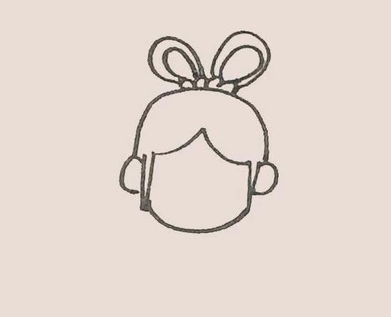 第二步:下面用一条弧线将两边连接起来形成脸,还要在两边画上半圆作为耳朵。