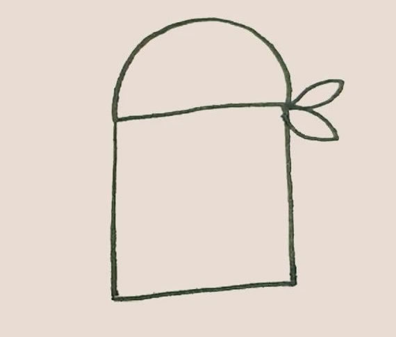第二步:长方形的上面画上半个圆形,右边加上两个小椭圆作为头巾。